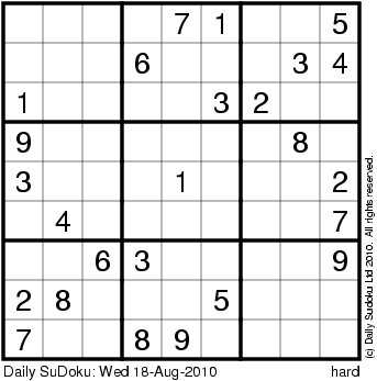 The Daily SuDoku: Wed 18-Aug-2010