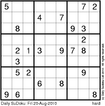 The Daily SuDoku: Fri 20-Aug-2010