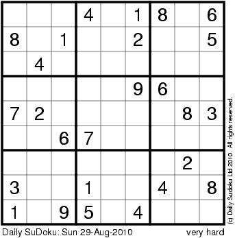 The Daily SuDoku: Sun 29-Aug-2010