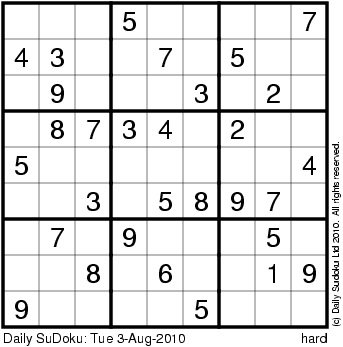 The Daily SuDoku: Tue 3-Aug-2010