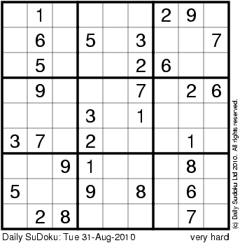 The Daily SuDoku: Tue 31-Aug-2010