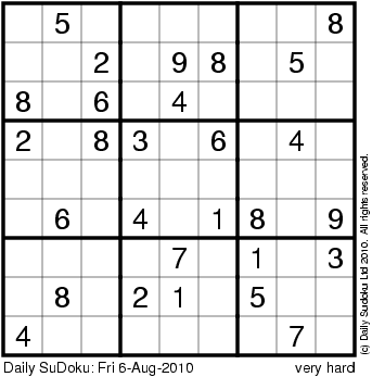 The Daily SuDoku: Fri 6-Aug-2010