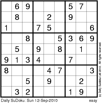 The Daily SuDoku: Sun 12-Sep-2010