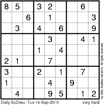 The Daily SuDoku: Tue 14-Sep-2010