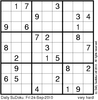 The Daily SuDoku: Fri 24-Sep-2010