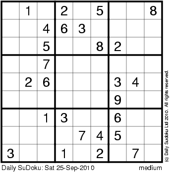 The Daily SuDoku: Sat 25-Sep-2010