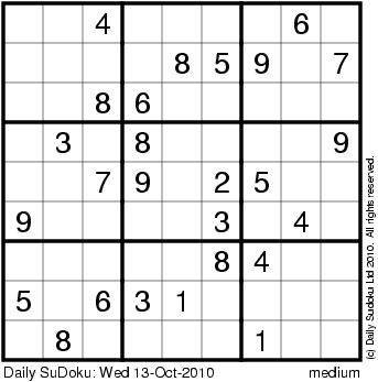 The Daily SuDoku: Wed 13-Oct-2010