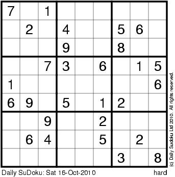 The Daily SuDoku: Sat 16-Oct-2010