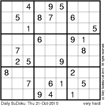 The Daily SuDoku: Thu 21-Oct-2010