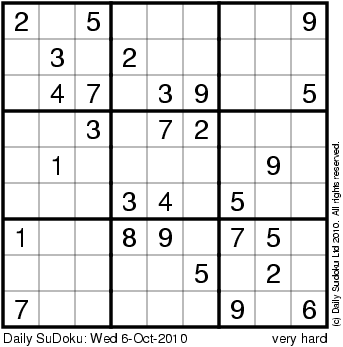 The Daily SuDoku: Wed 6-Oct-2010