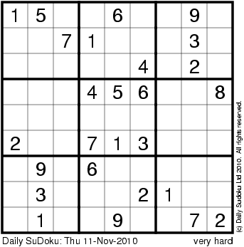 The Daily SuDoku: Thu 11-Nov-2010