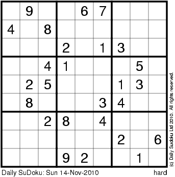 The Daily SuDoku: Sun 14-Nov-2010