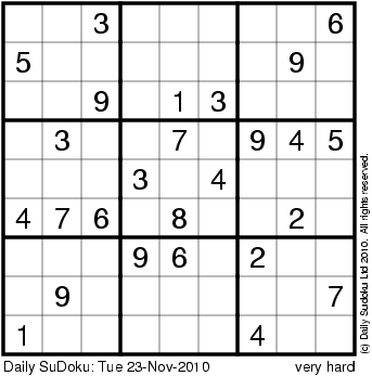 The Daily SuDoku: Tue 23-Nov-2010