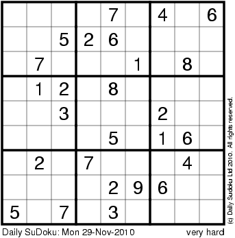 The Daily SuDoku: Mon 29-Nov-2010