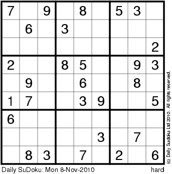 The Daily SuDoku: Mon 8-Nov-2010