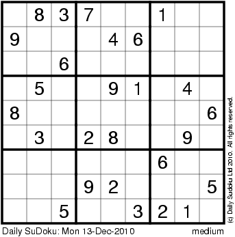 The Daily SuDoku: Mon 13-Dec-2010