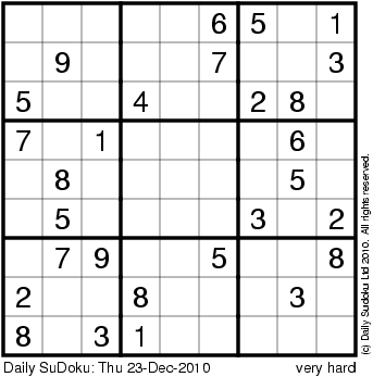 The Daily SuDoku: Thu 23-Dec-2010
