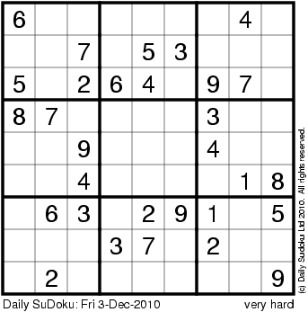 The Daily SuDoku: Fri 3-Dec-2010