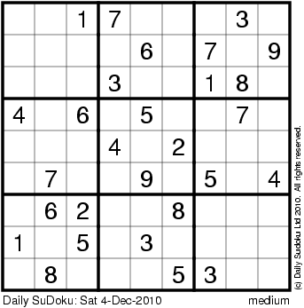 The Daily SuDoku: Sat 4-Dec-2010
