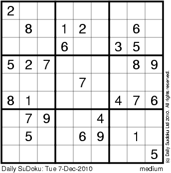 The Daily SuDoku: Tue 7-Dec-2010