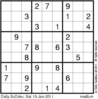 The Daily SuDoku: Sat 15-Jan-2011
