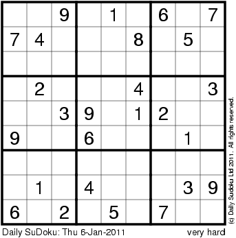 The Daily SuDoku: Thu 6-Jan-2011