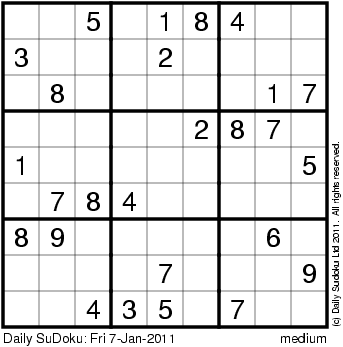 The Daily SuDoku: Fri 7-Jan-2011