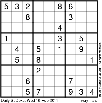 The Daily SuDoku: Wed 16-Feb-2011
