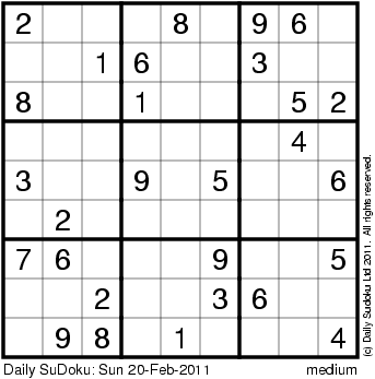 The Daily SuDoku: Sun 20-Feb-2011