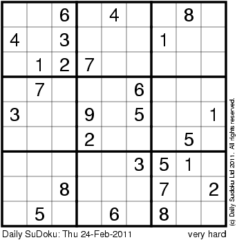 The Daily SuDoku: Thu 24-Feb-2011