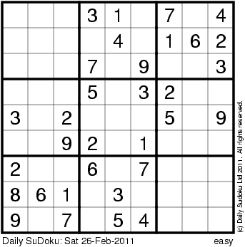 The Daily SuDoku: Sat 26-Feb-2011
