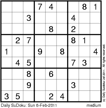 The Daily SuDoku: Sun 6-Feb-2011