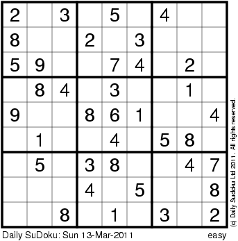 The Daily SuDoku: Sun 13-Mar-2011