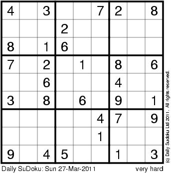 The Daily SuDoku: Sun 27-Mar-2011