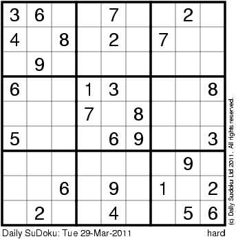 The Daily SuDoku: Tue 29-Mar-2011