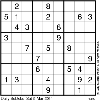 The Daily SuDoku: Sat 5-Mar-2011