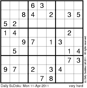 The Daily SuDoku: Mon 11-Apr-2011