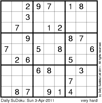 The Daily SuDoku: Sun 3-Apr-2011