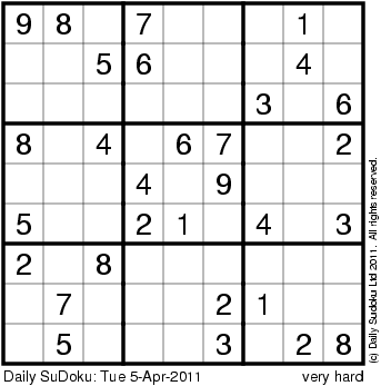 The Daily SuDoku: Tue 5-Apr-2011