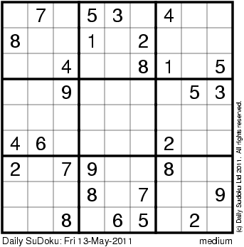 The Daily SuDoku: Fri 13-May-2011