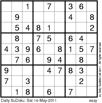 The Daily SuDoku: Sat 14-May-2011