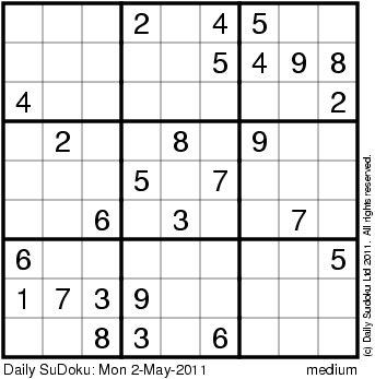 The Daily SuDoku: Mon 2-May-2011