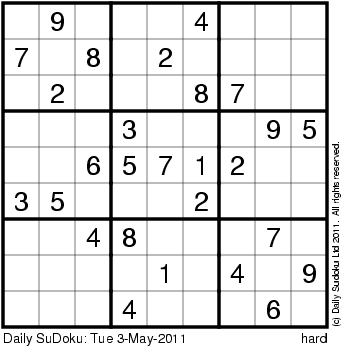 The Daily SuDoku: Tue 3-May-2011