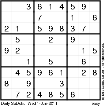 The Daily SuDoku: Wed 1-Jun-2011