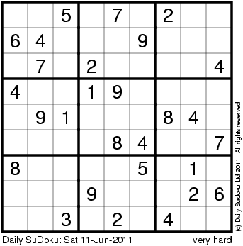 The Daily SuDoku: Sat 11-Jun-2011
