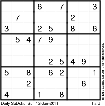 The Daily SuDoku: Sun 12-Jun-2011