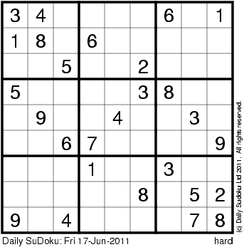 The Daily SuDoku: Fri 17-Jun-2011