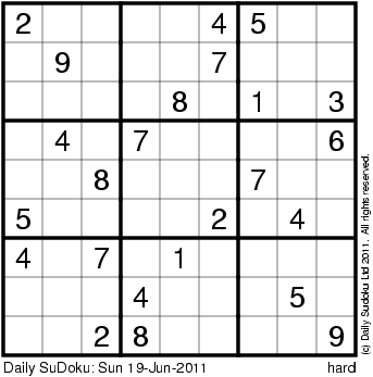 The Daily SuDoku: Sun 19-Jun-2011