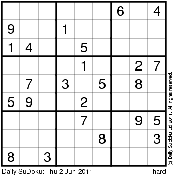 The Daily SuDoku: Thu 2-Jun-2011