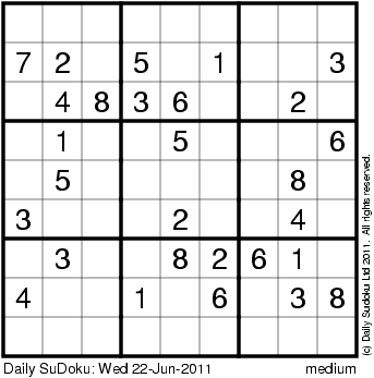 The Daily SuDoku: Wed 22-Jun-2011